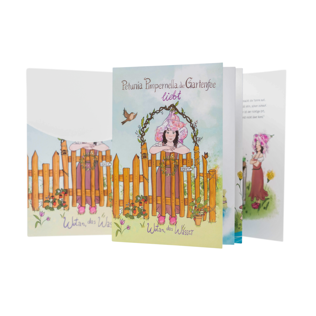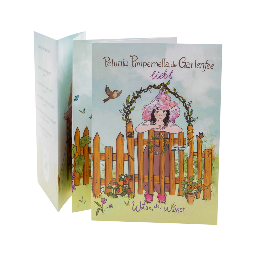 Petunia Pimpernella ist eine Gartenfee, die in Reimform kurze Geschichten aus Garten, Wald, Haus und von Tieren erzählt.