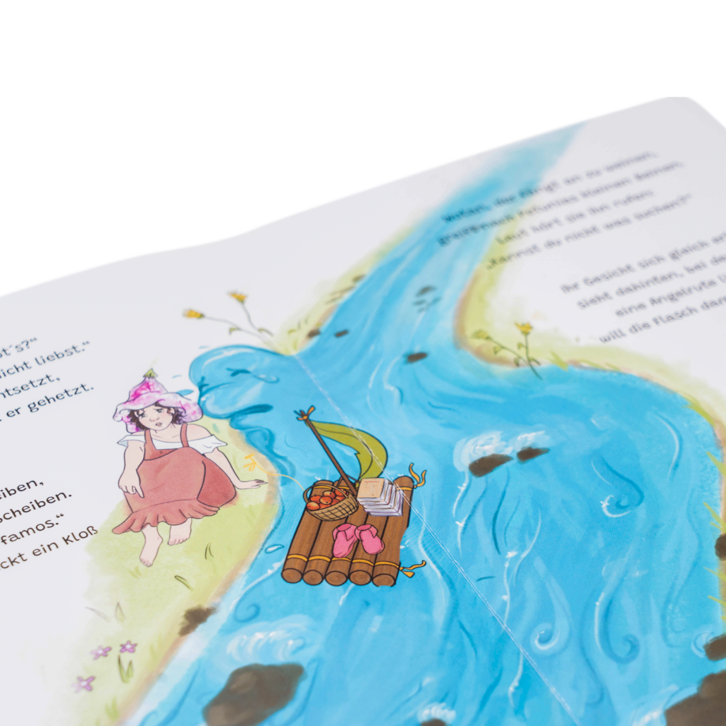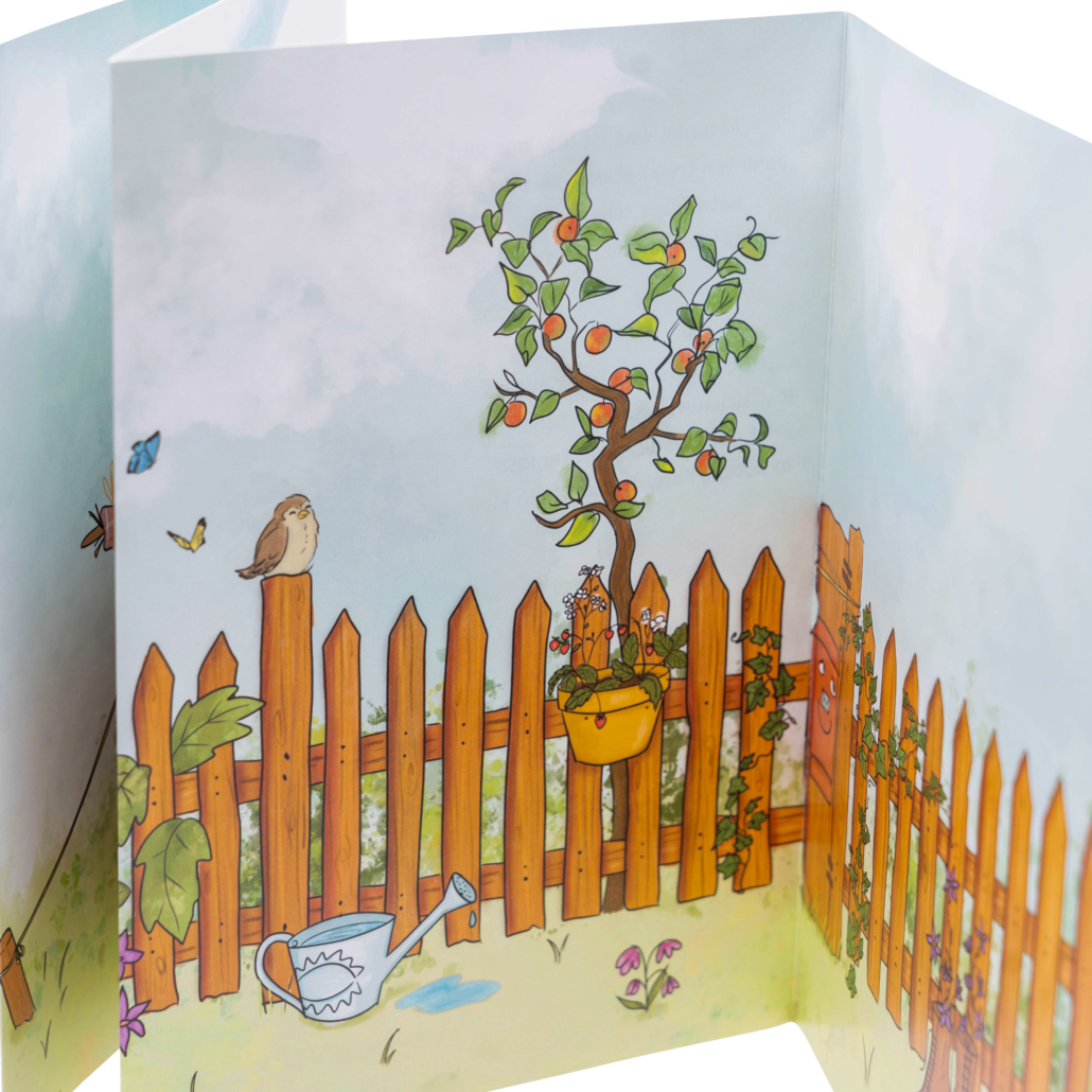 Durch die Ziehharmonika-Falttechnik können die illustrierten Seiten nach und nach zur vollständigen Geschichte aufgeklappt werden.