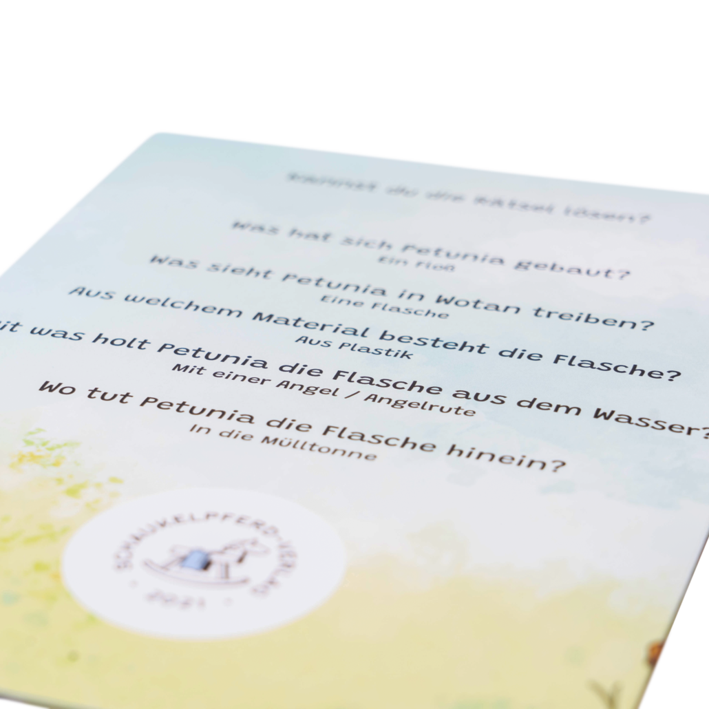 Die Geschichte hat zehn Reimabschnitte, an deren Ende es gilt Rätselfragen zu lösen.